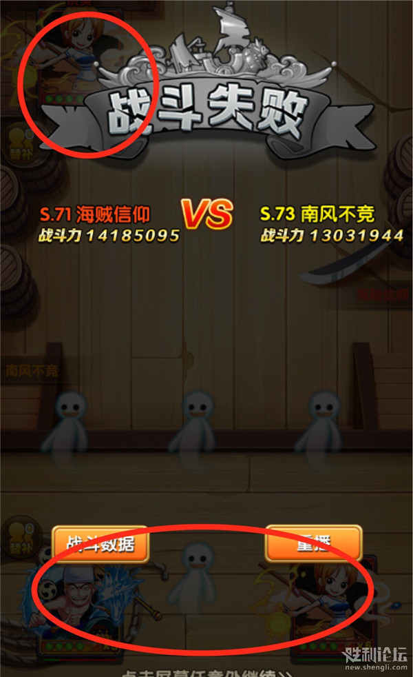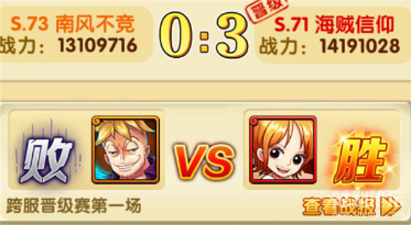 图中,下方是南风不竞,上方海贼信仰,南风剩余2人,海贼剩余1人,但是南风为攻击方,没有打成功,所以结果判为失败。