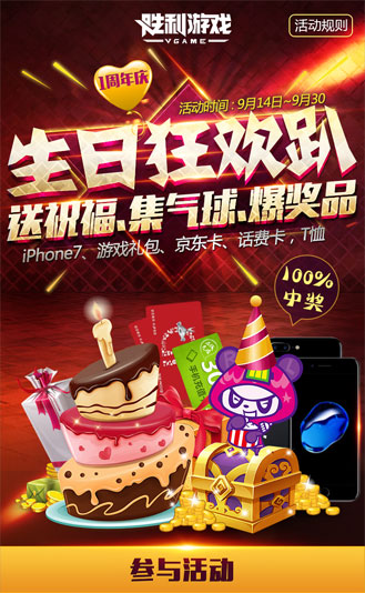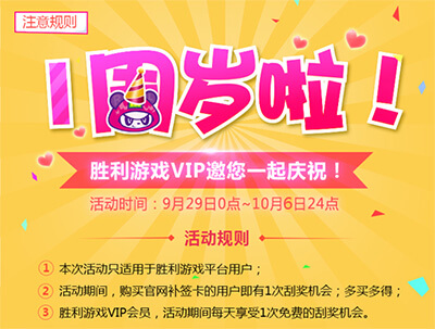 胜利游戏周年庆vip专属轰趴,一元送惊喜,100%中奖!