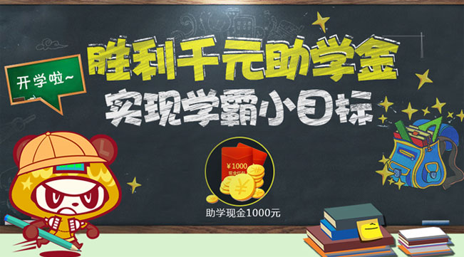 胜利游戏一周年开启助学金奖励模式,游戏中我们登峰造极,学习上亦需乘风破浪,在此胜利游戏祝您一臂之力!只要你是学生玩家,注册成为胜利游戏用户,指定游戏达到20级,上传学生证照片及宿舍口号,既有机会抽取1000元助学金。点击参与>>