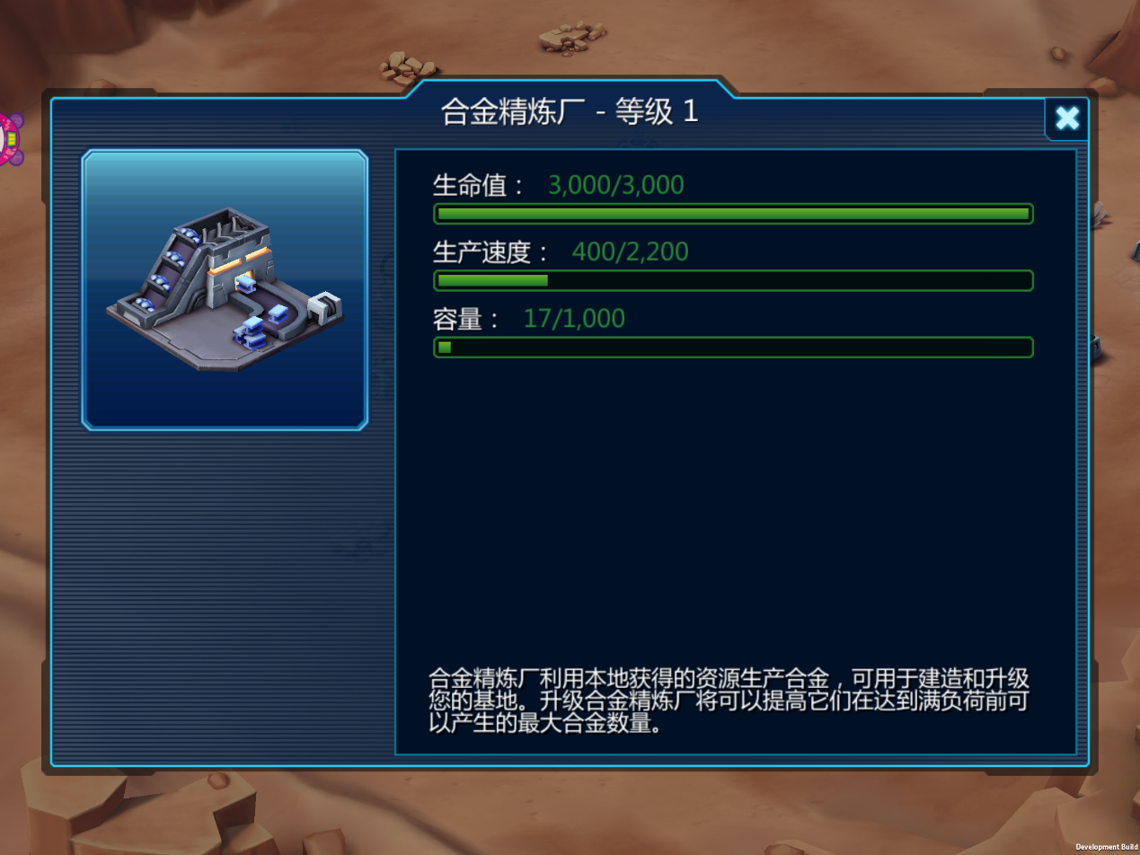 合金精炼厂会随时建筑等级的提升,增加其生命值、生产速度以及合金容量。因此,想让你的合金资源更快更多的产出,就尽快提升建筑等级吧。