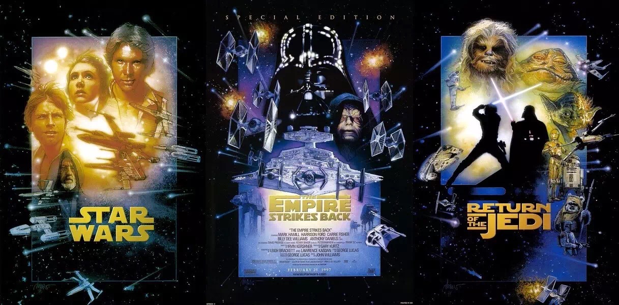 星战正传三部曲,依次是《新希望》《帝国反击战》《绝地归来》