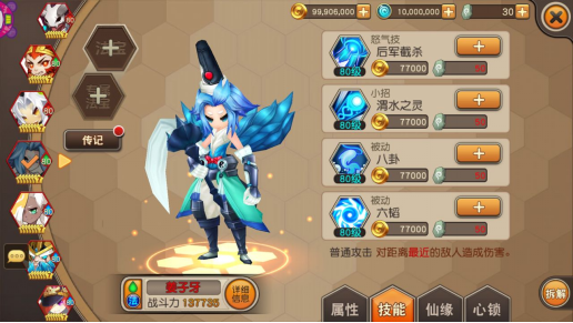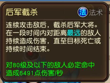 姜子牙定位SS神将,怒气伤害方式必然不俗,直接对距离最远的神将进行远程截杀,持续输出,80级高达到6500爆炸秒伤,对方后排几乎不可能存活。