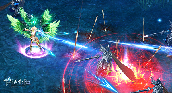 《神话永恒》由《全民奇迹》原班核心人马全新打造,从阴暗潮湿的哥特式古堡到抬头仰望星河烂漫的璀璨夜空,从旷野中的静谧村庄到风吹草动叶落飞花,将让玩家置身于恢弘磅礴的魔幻大世界!《神话永恒》美术设计则由负责过《天堂II》》、《剑灵》、《TERA》等多款世界级端游视觉表现的美术大咖裴昌成全力监制,在角色造型、装备外观、环境建筑及羽翼翅膀等美术理念上,《神话永恒》把最为细腻的光照演算与更加逼真的流体模拟,搭配极度绚丽的多彩粒子特效,将给用户带来身临其境、充满幻想的极致视觉享受。